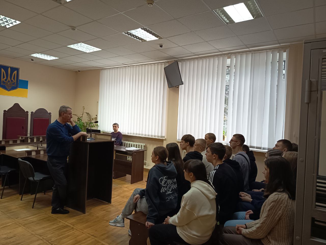 Під час заходу голова суду Микола Шелюховський розповів школярам багато цікавої та корисної інформації про діяльність суду, здійснення правосуддя, відповідальність неповнолітніх, власну суддівську практику, про основні принципи здійснення правосуддя та особливості юридичних професій; ознайомив з вимогами, яким мають відповідати особи, що збираються працювати в галузі права, а також діти отримати практичні поради щодо вибору свого професійного майбутнього.