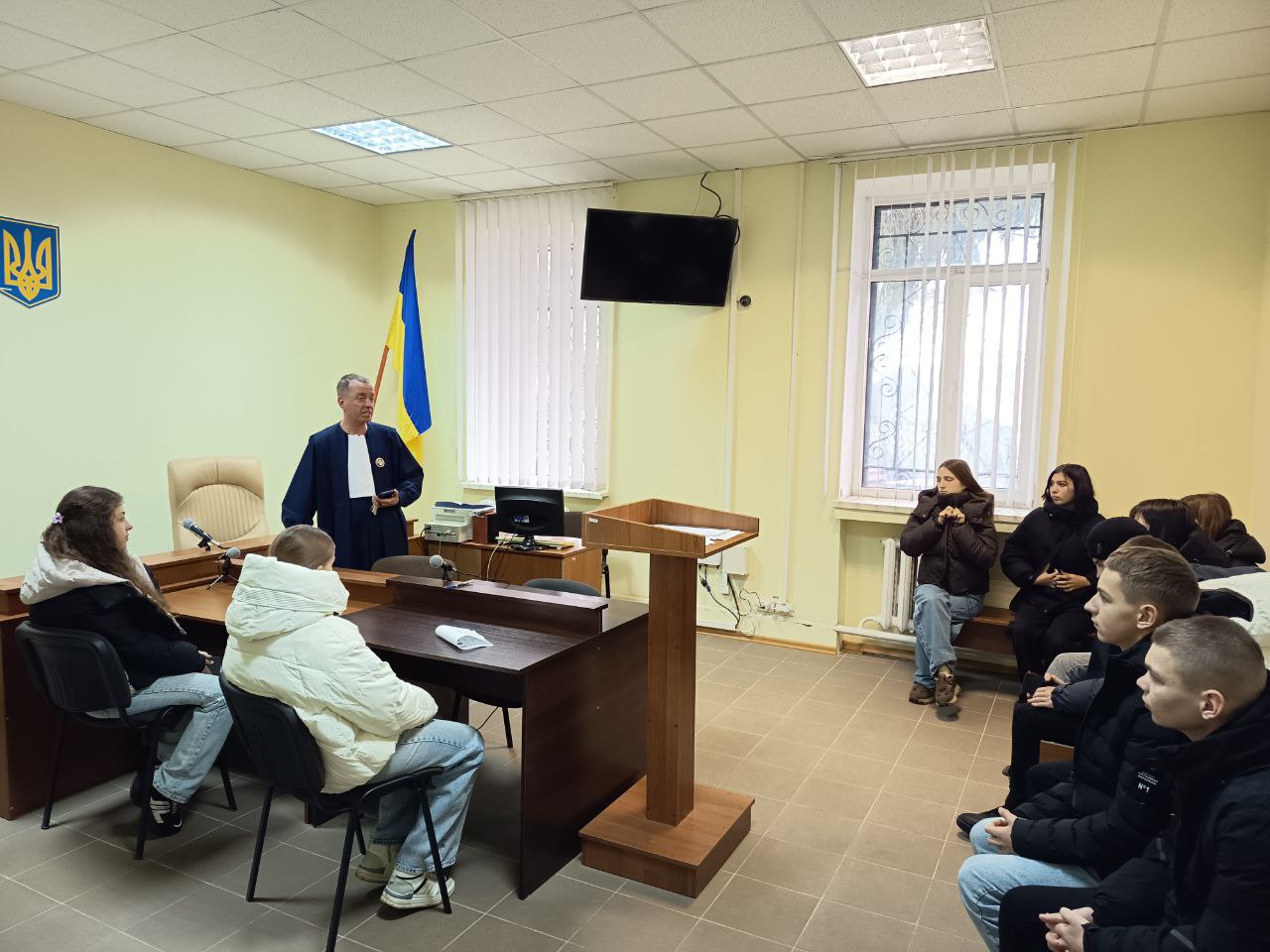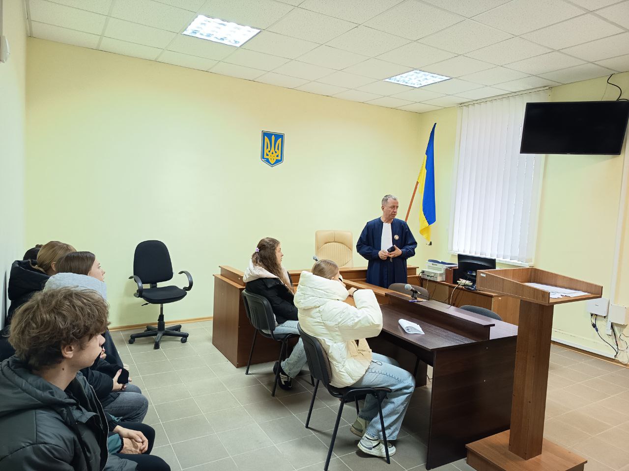 Під час заходу голова суду Микола Шелюховський розповів школярам про основні принципи здійснення правосуддя, про те, що професія судді – почесна та відповідальна, потребує ґрунтовних професійних знань, життєвого досвіду, оскільки за кожним вердиктом судді – людська доля.