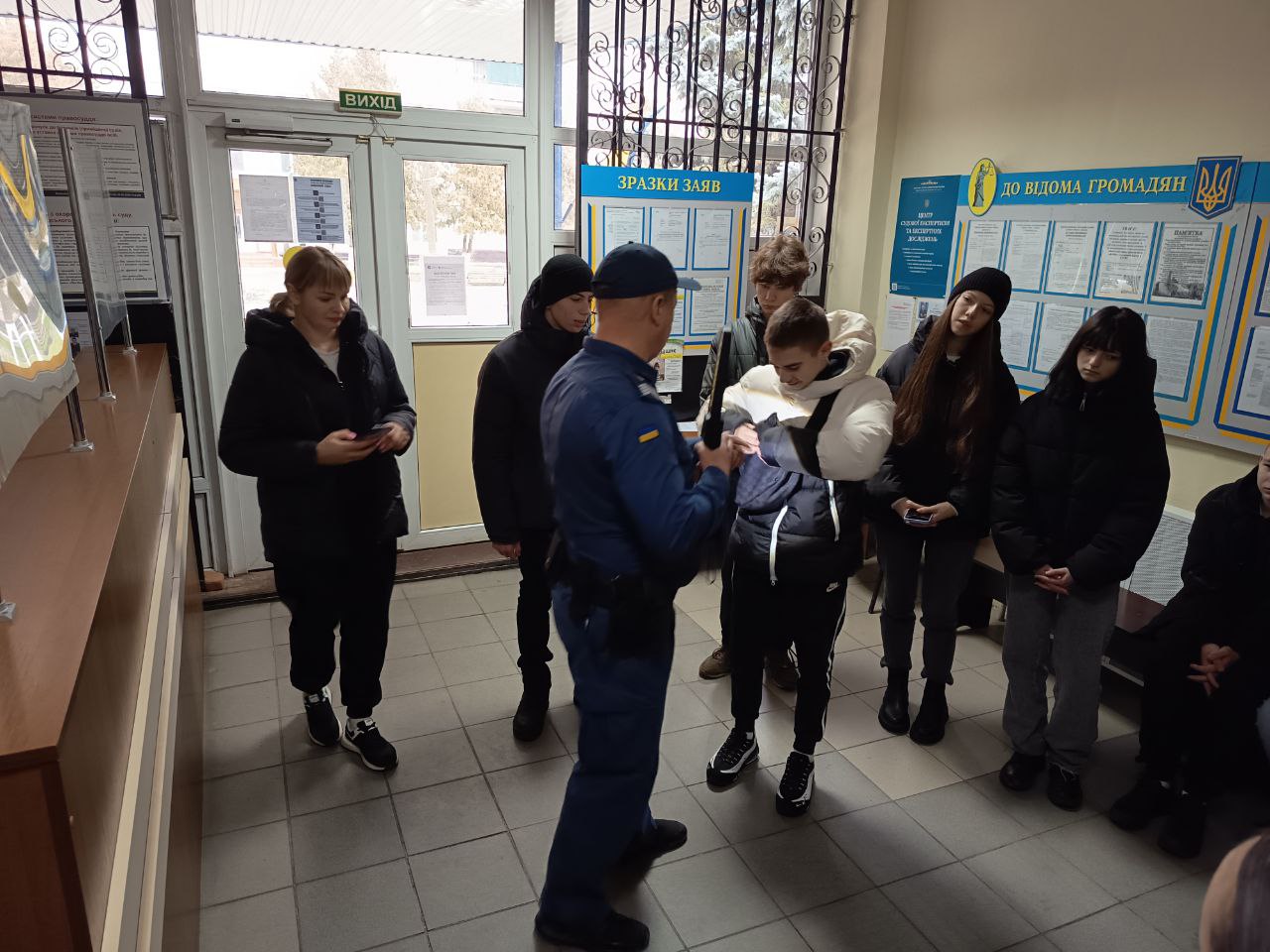Зустріли учнів працівники служби судової охорони. Командир відділення м. Іллінці ст. сержант Служби судової охорони Андрій Білоконь, який ознайомив із порядком пропуску осіб до приміщення суду та роботою служби судової охорони.