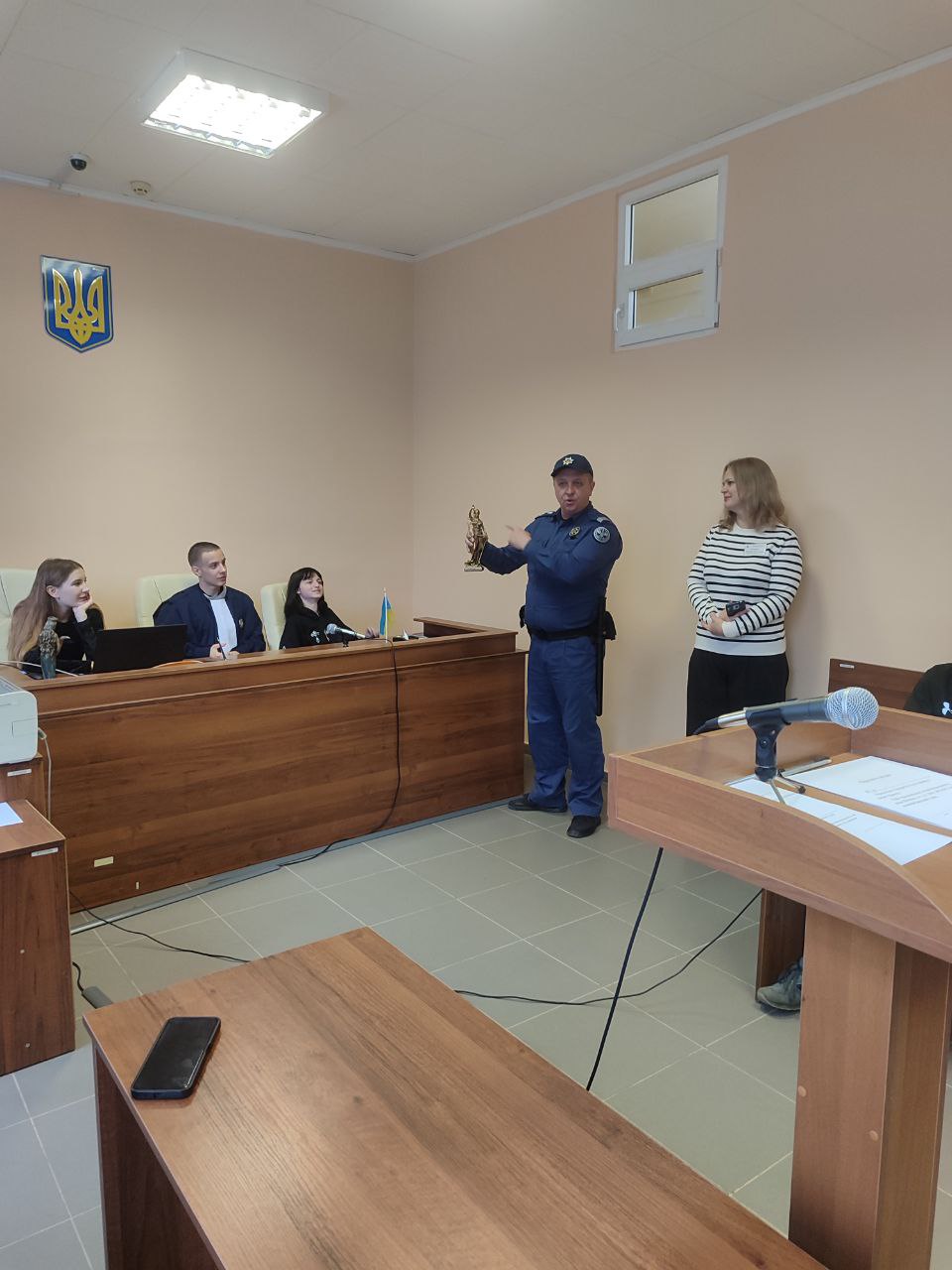 З привітальним словом до дітей звернулась керівник апарату суду Оксана Самофал та провела екскурсію судом, розповіла про види судів, юридичні професії, судові справи, їхній розгляд, показала архів суду та розповіла про терміни зберігання справ і процес їх знищення, зберігання речових доказів.